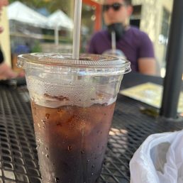 This little spot is a nice old-time feel within the Claremont Village. Very pleasant staff with efficient service- especially during the lunchtime rush. All the food and sandwiches we had here were fresh and delightful in taste. I especially love that they offer alfalfa sprouts on sandwiches. They boast an expansive menu fit to meet nearly anyone's mealtime preferences. From sandwiches, muffins, and cookies to tea, coffee, and smoothies. Their Pina Colada smoothie was DELICIOUS! Also highly recommend their vegan out sandwich on squaw bread ($12) and/or their chicken salad delight sandwich ($15). You just can't go wrong! They also have a couple of dog friendly tables to dine on out front of their cafe. Definitely come enjoy The Last Drop Cafe if you haven't already.